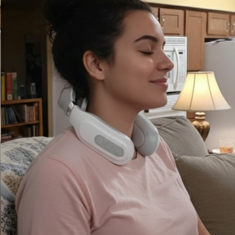 Now, imagine coming home, putting on your Smart Neck Massager...Within minutes, the heat soothes your muscles, the tension melts away, and you finally feel calm, light, and pain-free.